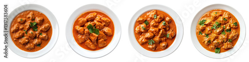 White plate of butter chicken curry isolated on transparent background. PNG, Set of