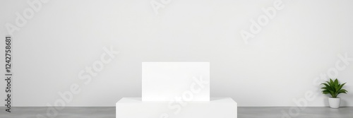 White podium standing alone against a neutral grey wall, with no distracting features or objects nearby, clean, empty, modern