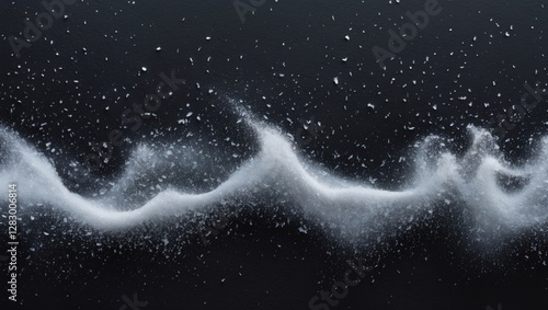 White powder wave on black background with fine particles creating a fluid shape and texture in motion.