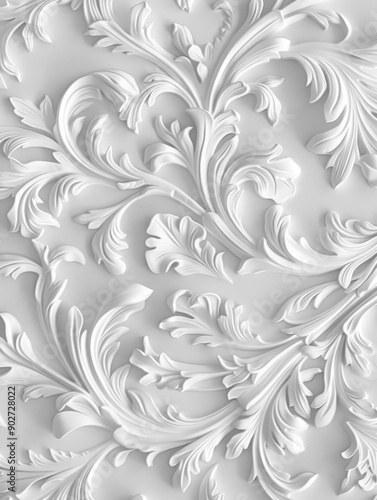 White relief floral pattern. Nature-inspired decoration. A pale grey acanthus pattern. Decorative carving