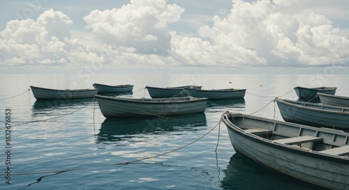 White rowboats on calm water
