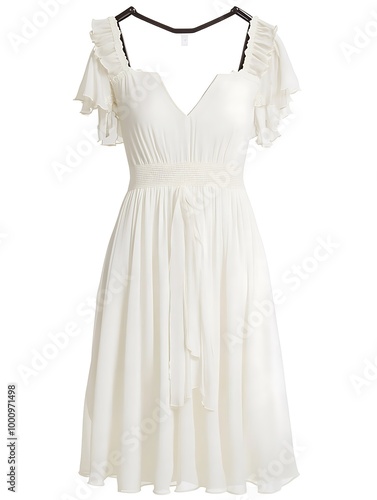 dress, white dress, white, pleated, ruffled, summer dress, fashion, clothing, apparel, female, woman, girl, style, elegant, casual attire, beautiful, trendy, silky, soft, comfortable, airy, lightweight, chic, modern, stylish, feminine, romantic, party, wedding, occasion, date, photoshoot, model, outfit