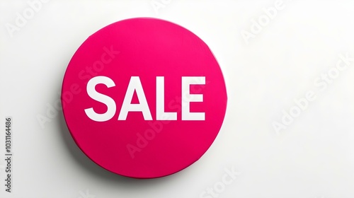 White 'SALE' Text on a Hot Pink Round Paper Note. White Background with Copy Space