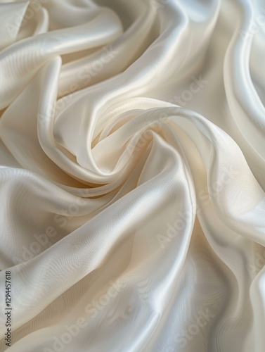 White satin fabric drapes gracefully, featuring smooth folds and a pristine texture with soft highlights