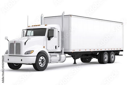 White Semi-Truck Trailer Isolated on White Background
