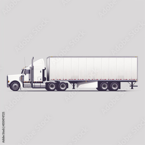 White Semi-Truck with Trailer on Gray Background, Side View, Detailed Illustration, Transportation and Logistics, Trucking Industry, Commercial Vehicle Art, 4K Wallpaper, Poster
