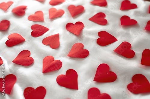 White silk backdrop adorned with red heart motifs, pattern for wedding and love themes
