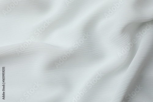 White silk fabric. Soft folds. Luxury background with space for design. Flat table, top view
