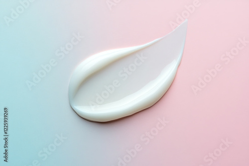 White skincare cosmetic cream lotion swatch smear smudge on pastel gradient background. Beauty, cosmetic, makeup
