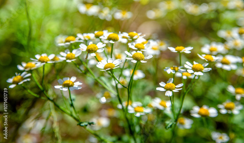 daisy, lawn, chamomile, garden, flower, spring, white, green, beautiful, small, daisy, field, nature, botanical, plant, grass, background