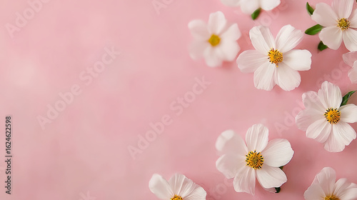 White small flowers on a pink background, suitable for wedding scenes, romantic themes, festival decoration,