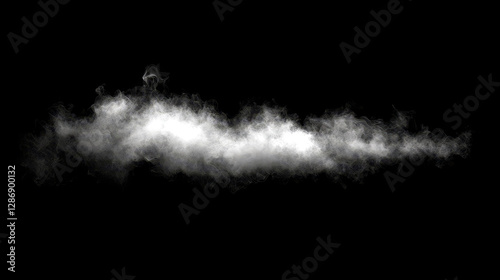 White smoke or fog drifting across the floor, creating a thick mist in a dark room against a black backdrop--ideal for stage or studio effects