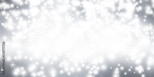 White snowflake blurred on gray defocused background, Luxury christmas shine wallaper.