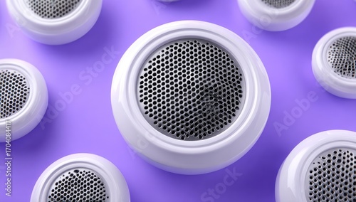 speaker, white, lavandula, background, round, audio, technology, design, modern, geometric, pattern, dot, metal, grid, mesh, circle, closeup, product, display, texture, sound, music, stereo, portable, compact, wireless, speaker, audiovisual, device, electronic, equipment, accessory, tech, contraption, minimal, flat, surface, patterned, detail, contemporary, three-dimensional, object