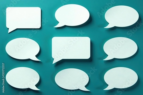 White speech bubbles on dark teal background, geometric repeat, background, teal, designs