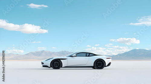 car, sports car, desert, landscape, vehicle, speed, motion, automotive, transportation, travel, adventure, luxury, modern, automobile, machine, design, style, driving, road trip, open road, blue skies, cloud, mountain, horizon, exterior, half face, minimal, clean