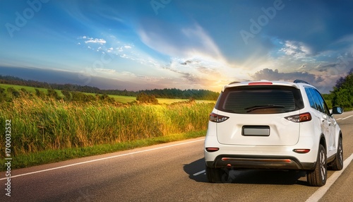 white suv driving on a scenic country road