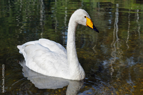 White swan floating on the smooth water.