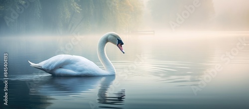 White Swan in the middle of the lake. Creative banner. Copyspace image
