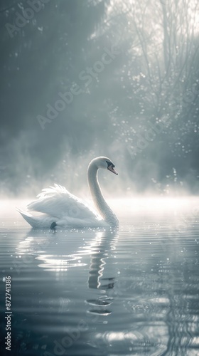 mist, wildlife, bird, white, wild, beauty, blue, lake, nature, water, background, calm, peace, purity, tranquil, light, animal, symbol, elegance, elegant, feather, grace, graceful, lovely, mirror, peaceful, romance, single, love, morning, beautiful, landscape, dawn, wing, cygnet, cygnet, day, summer, romantic, sunrise, valentine, beak, river, duck pond, floating, horizon, swim, life