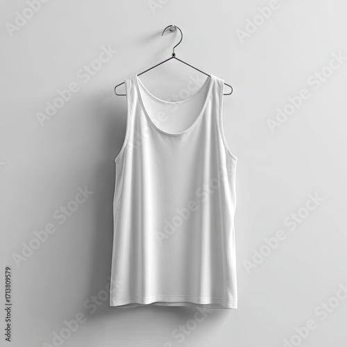 tank, top, white, clothing, garment, sleeveless, plain, simple, hanger, metal, fashion, apparel, design, studio, photo, blank, unisex, casual attire, basic, summer, cotton, fabric, textile, wearable, style, minimalist, neutral, product, display, hanging, modern, clean, light, grey, solid, colours, soft, smooth, empty, ready, to, print