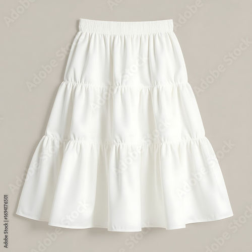 white, maxi, fashion, clothing, apparel, flowing, graceful, pleated, layered, casual attire, bohemian, summer, spring, light, airy, comfortable, stylish, versatile, studio shot, grey background, no people, cut-out, feminine, romantic, elegant, classic, chic, vacation, beach, frill, pleated, modern, minimalist, clothes, skirt, garment