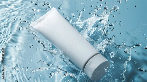 White tube splashing water. A white tube is submerged in water, creating a dramatic splash. The image symbolizes purity, freshness, and cleansing.
