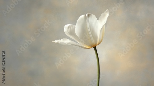 White Tulip on Neutral Gray Background