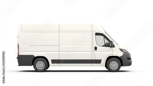 White Van Side Profile 3D Render, Delivery Vehicle, Mockup, Transportation Delivery Van, Mockup