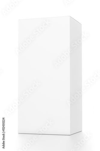 White vertical rectangle blank box from front far side angle. 3D illustration isolated on white background.