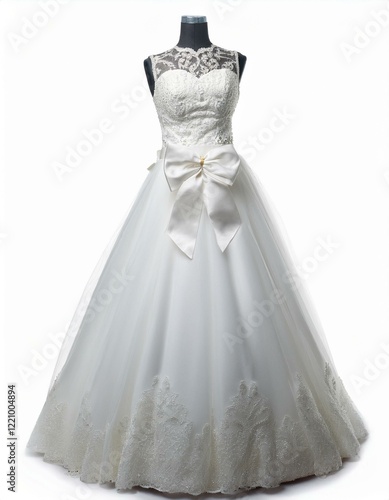 white wedding dress, Beautiful Wedding dress and white bow isolated on white background wedding white dress