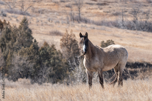 White Wild Horse in Theodore Roosevelt National Park in Spring