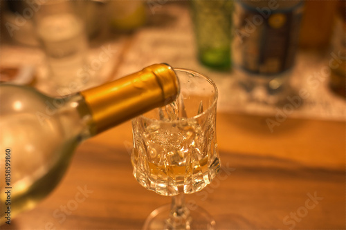 bottle, wine, glasses, crystal, new year, alcoholic, drink, home, home, 1, cheer, 2026, new year, party, alone, white wine, anniversary, dinner, wine bottle, sparkling, gold, romance, enjoy, natural, elegant, romantic, wine glass, wine tasting, luxury, liquid, celebration, alcohol, winery, beverage, bar, isolated, eatery, wine glass, pouring, celebrate, epicure, object, background, closeup, elegance, food, grape