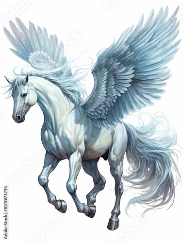 white, horse, winged, flying, pegasus, myth, creature, fantasy, magical, animal, flight, wing, feather, mane, tail, hoof, powerful, graceful, majestic, sky, cloud, mythical, legendary, aethereal, dreamlike, artistic, illustration, digital, art, painting, render, artwork, design, beautiful, elegant, strong, fast, swift, freedom, celestial