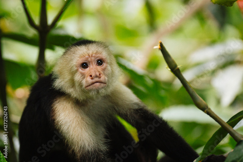 White-faced Capuchin Monkey in the Lush Greenery of Costa Rica's Rainforest