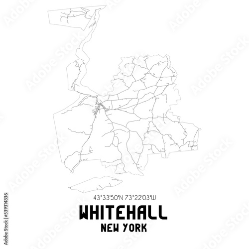 Whitehall New York. US street map with black and white lines.