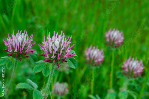 california poppy, clover, clover, california, pink, flower, flower, bloom, blooming, plant, nature, natural, native, closeup, closeup, nobody, green background, selective focus, side, lateral, view, us, america, north american, us, us, copy space, spring, springtime, field, meadow, wildflower, wildflower