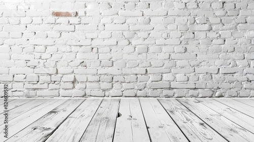 Whitewashed brick wall texture with wooden floor,room with brick wall