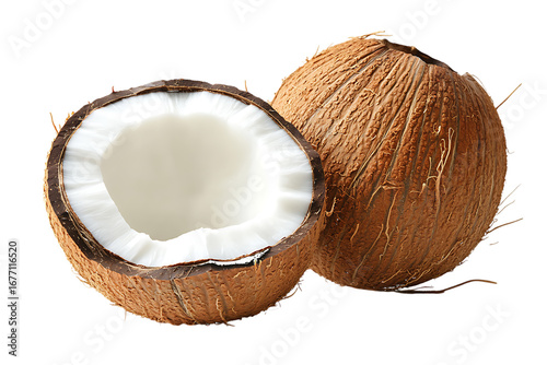Whole and Halved Coconut with White Flesh isolated on a transparent background fruit 2