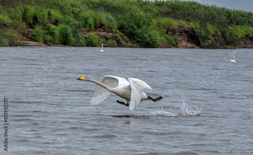 Whooper Swan (Cygnus cygnus) in Barents Sea coastal area, Russia