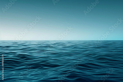 Wide view of a calm ocean with gentle waves under a clear blue sky, suggesting tranquility