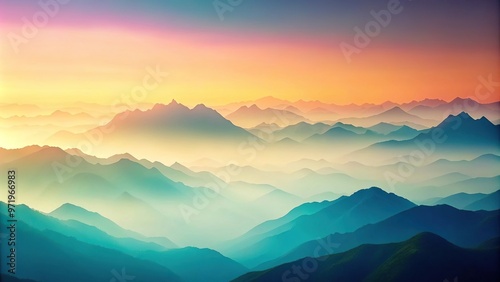 Wide-Angle Mountains and sky pastel colored gradient copy space