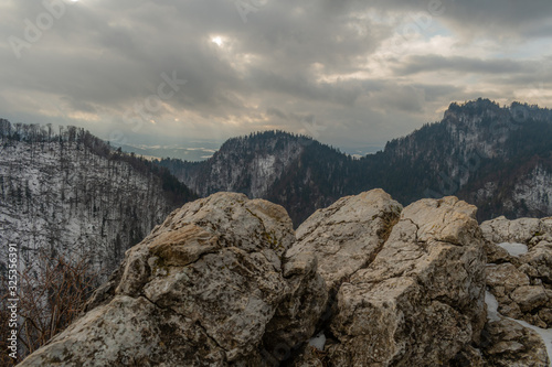 Widoki z pienińskiego szczytu Sokolica w pochmurny dzień