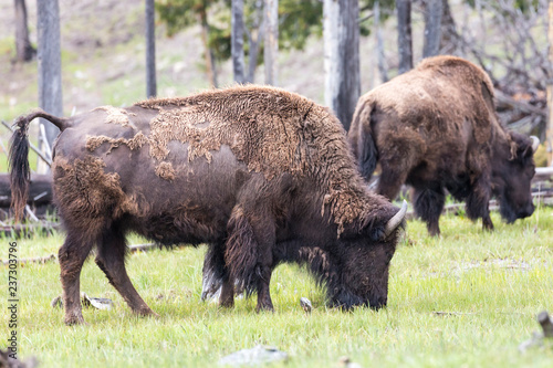 bison, buffalo, animal, mammal, wildlife, wild, nature, grass, grazing, horn, bull, herd, fur, brown, horn, park, yellowstone, field, animal, calf, head, cattle, cow, national, wyoming, montana, baby, american, male, landscape, day, prairie, mother