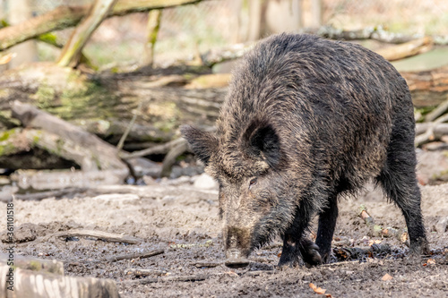 animal, boar, mammal, closeup, dirt, field, fur, hair, hog, mud, muddy, nature, no one, outdoors, pig, snout, wild, wild boar, wildlife