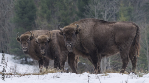 bison, buffalo, animal, mammal, wildlife, ukraine, carpathians, forest, winter, snow, wild, nature