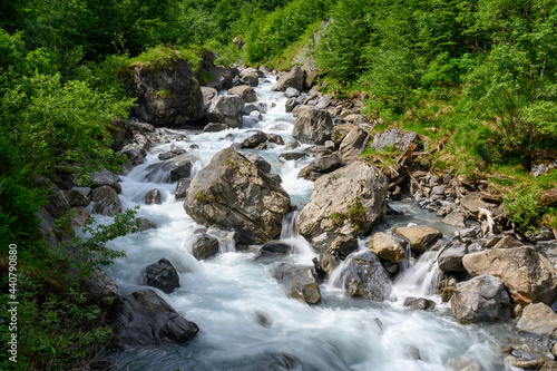 wild flowing Sandbach creek in Sandwald, Linthal Glarus