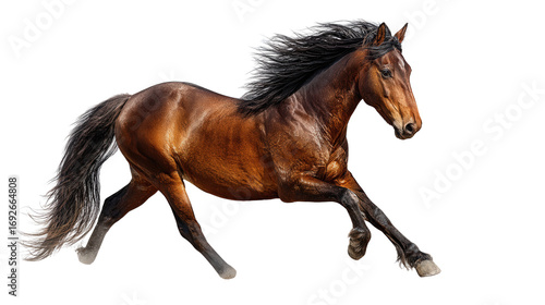 Wild Horse Running Free: A wild horse galloping freely across the plains, isolated on a Transparent background, PNG file.