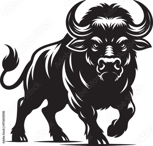 buffalo, cattle, bull, bison, animal, wild, big, ox, farm, agriculture, large, wildlife, standing, horn, male, beast, safari, cartoon, silhouette, illustration, isolated, symbol, icon, design, black, drawing, logotype, graphic, outline, art, clip art, simple, drawn, element, line art, shape, flat, logotype, artwork, design element, decorative, vector