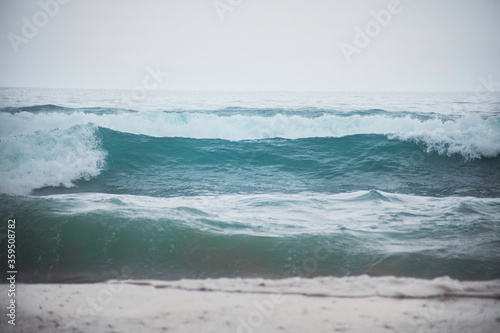 wild windy waves in the Atlantic ocean, with the white foam and splashes